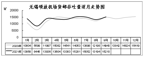 图8:2020年以来苏南硕放机场货邮吞吐量逐月走势图