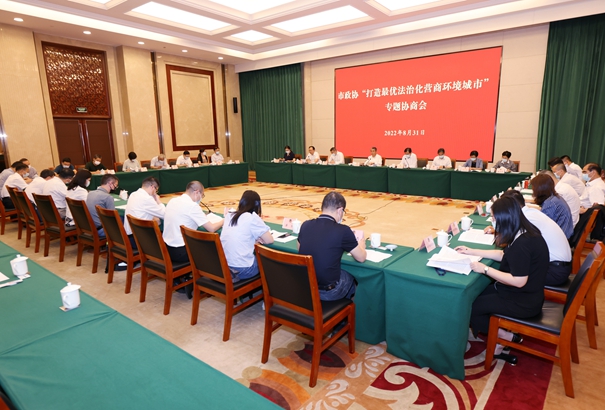 8月31日,市政协主席项雪龙主持召开专题协商会,围绕“打造最优法治化营商环境城市”进行协商议政。市委副书记、政法委书记朱爱勋出席会议并讲话。副市长张镇,市政协副主席叶勤良、韩晓枫、毛加弘、顾铮铮,市政协秘书长钱文琴参加会议。会上,市政协社会法制委员会汇报了调研及建议情况;8位政协委员结合工作实际,围绕“放管服”改革、数字经济法治保障、金融法治环境、法治文化建设等方面提出意见建议。